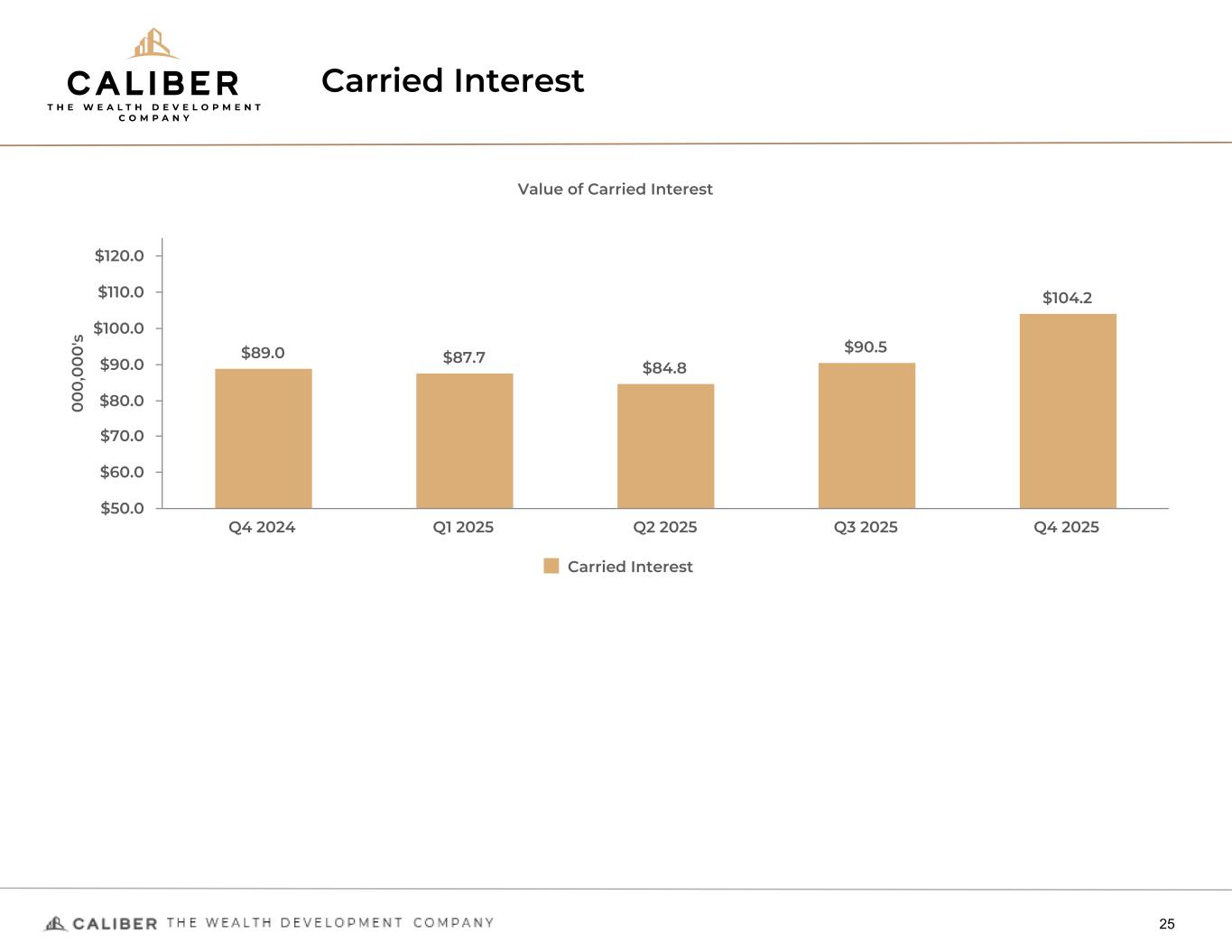 Carried Interest 25 0 0 0 ,0 0 0 's Value of Carried Interest $89.0 $87.7 $84.8 $90.5 $104.2 Carried Interest Q4 2024 Q1 2025 Q2 2025 Q3 2025 Q4 2025 $50.0 $60.0 $70.0 $80.0 $90.0 $100.0 $110.0 $120.0