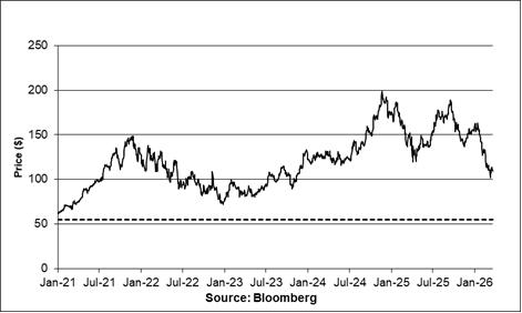 | The Common Stock of Blackstone Inc. – Daily Closing Prices* January 4, 2021 to March 23, 2026 |