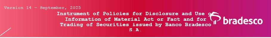 We declare that this is a free English translation of the Instrument of Policies for Disclosure and Use of Information of Material Act or Fact and for Trading of Securities Issued by Banco Bradesco S.A., approved in the Special Meeting of the Board of Directors of Banco Bradesco S.A. No. 863, held on July 29, 2002, whose last review, without amendments, was approved by the Executive Officer in charge on August 18, 2025.