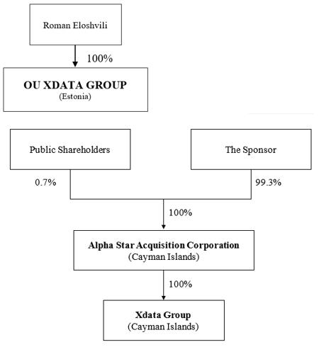 The board of directors of Alpha Star Acquisition Corporation, a Cayman Islands exempted company, has unanimously approved the Transactions (as defined below) contemplated by that certain business combination agreement dated as of September 12, 2024 (the “Business Combination Agreement”) by and among Alpha Star Acquisition Corporation (“Alpha Star”), a Cayman Islands exempted company, OU XDATA GROUP (“XDATA”), a company incorporated in Estonia, and Roman Eloshvili, the sole shareholder of XDATA. Xdata Group (“PubCo”) was incorporated on September 4, 2024. On September 23, 2024, PubCo entered into a joinder agreement with Alpha Star, XDATA, and Roman Eloshvili, pursuant to which PubCo agreed to be bound by the terms of the Business Combination Agreement. Pursuant to the Business Combination Agreement, Alpha Star will merge (the “Reincorporation Merger”) with and into PubCo, with PubCo surviving the Reincorporation Merger as the holding and listed company, and immediately thereafter and as part of the same overall transaction, PubCo (as the surviving company of the Reincorporation Merger) will acquire the shares, representing 100% (on an as-converted and fully diluted basis) of the shares issued and outstanding of XDATA, resulting in XDATA being a wholly owned subsidiary of PubCo, in exchange for certain number of shares of PubCo (the “Share Exchange,” together with the Reincorporation Merger, the “Business Combination”). As a result of the Business Combination, and upon consummation of the Business Combination and the other transactions contemplated by the Business Combination Agreement (such transactions, collectively, the “Transactions”), the shareholders of Alpha Star and XDATA will become shareholders of PubCo. The Business Combination Agreement was subsequently amended by certain supplemental agreement, by and among Alpha Star, XDATA, Roman Eloshvili and PubCo, dated as of December 15, 2024 (the “Supplemental Agreement”).