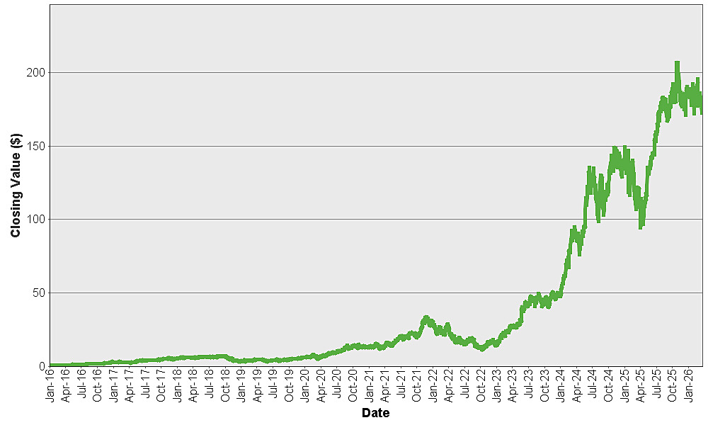 The graph below shows the closing value of NVIDIA Corporation for each day such value was available from January 4, 2016 to March 24, 2026. We obtained the closing values from Bloomberg L.P., without independent verification. If certain corporate transactions occurred during the historical period shown below, including, but not limited to, spin-offs or mergers, then the closing values shown below for the period prior to the occurrence of any such transaction have been adjusted by Bloomberg L.P. as if any such transaction had occurred prior to the first day in the period shown below. You should not take historical closing values as an indication of future performance.