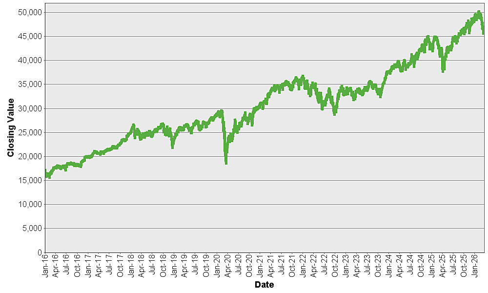 The graph below shows the closing value of the Dow Jones Industrial AverageTM for each day such value was available from January 4, 2016 to March 25, 2026. We obtained the closing values from Bloomberg L.P., without independent verification. You should not take historical closing values as an indication of future performance.