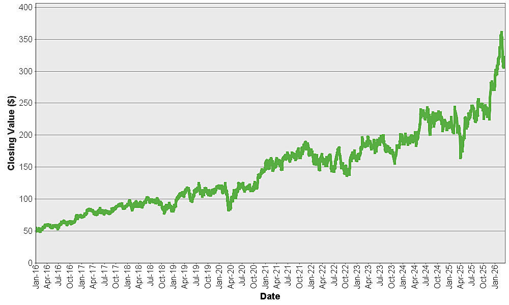 The graph below shows the closing value of Analog Devices, Inc. for each day such value was available from January 4, 2016 to March 25, 2026. We obtained the closing values from Bloomberg L.P., without independent verification. If certain corporate transactions occurred during the historical period shown below, including, but not limited to, spin-offs or mergers, then the closing values shown below for the period prior to the occurrence of any such transaction have been adjusted by Bloomberg L.P. as if any such transaction had occurred prior to the first day in the period shown below. You should not take historical closing values as an indication of future performance.