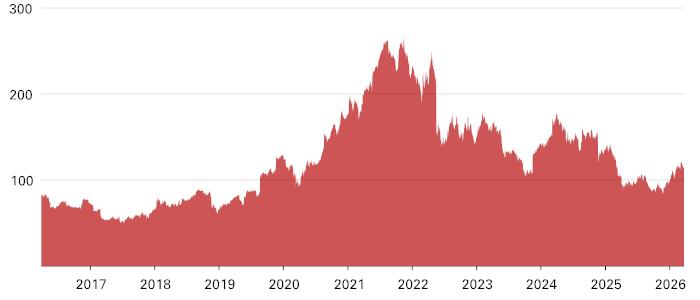 The following graph sets forth the historical performance of TGT based on the daily historical closing values from March 24, 2016 through March 24, 2026. We obtained the closing values below from the Bloomberg Professional® service. We have not undertaken any independent review of, or made any due diligence inquiry with respect to, the information obtained from the Bloomberg Professional® service.![]() |