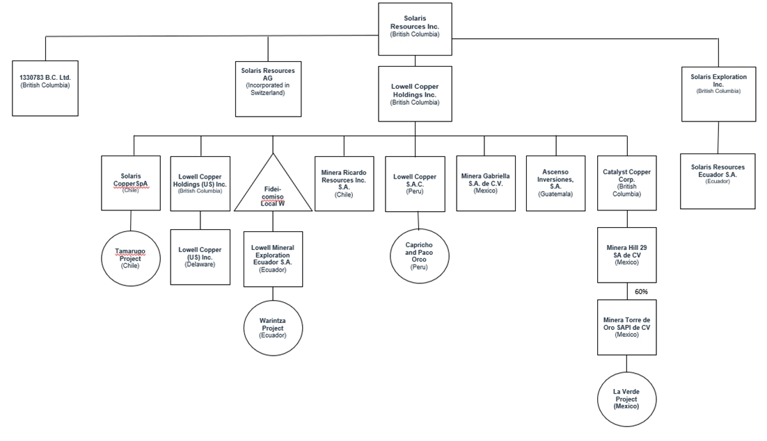 | 1. | Minera Ricardo Resources Inc. S.A. is 100% owned by Lowell Copper Holdings Inc., except for one share held by Solaris. |