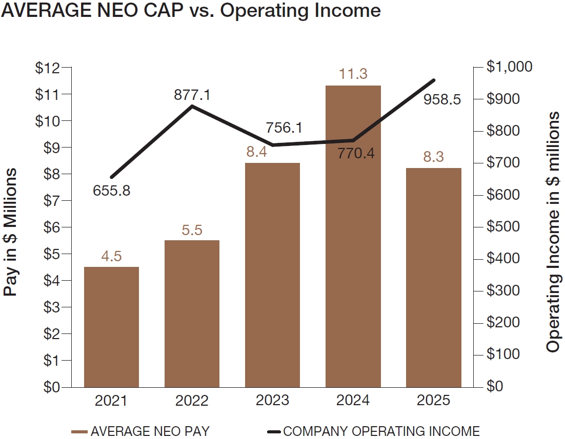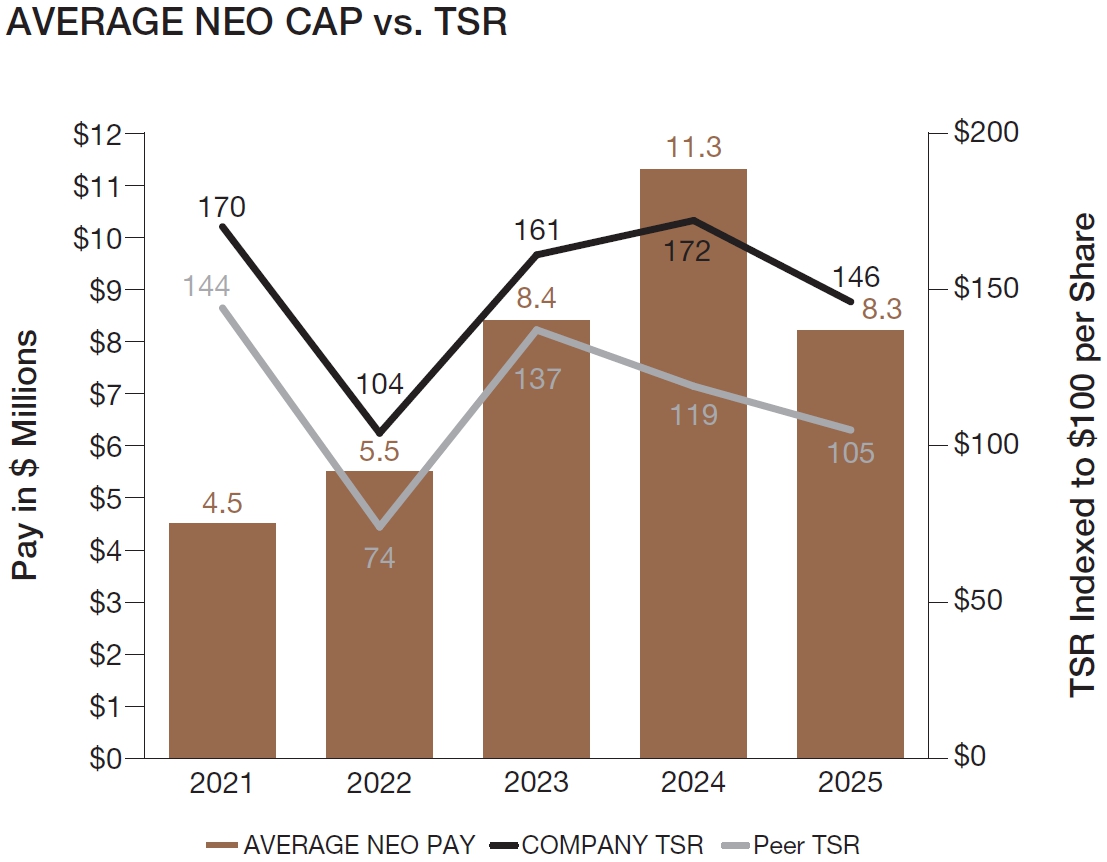 In general, we offer employees base salary, company retirement plan contributions, the opportunity to receive incentive awards for performance, and other benefits. In accordance with SEC rules, the median employee compensation provided above reflects company retirement plan contributions, incentive awards for 2025 performance and other benefits, but does not reflect benefits relating to group life or health plans generally available to all salaried employees.