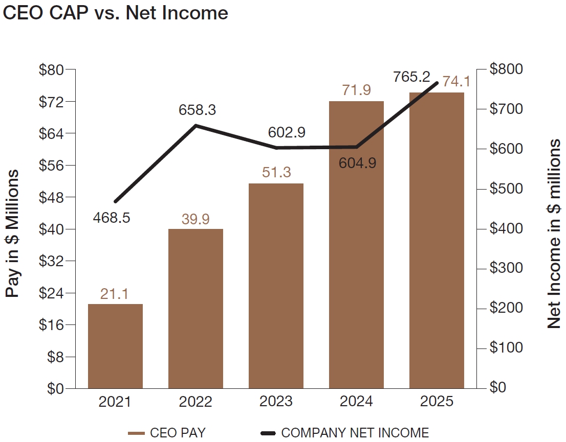 In 2025, the total compensation of Mr. Christopher, our Chief Executive Officer, was $27,562,773 as reported in the “Summary Compensation Table for 2025.” Based on the methodology described below, we determined that the median employee in terms of total 2025 compensation of all of our employees (other than Mr. Christopher) received an estimated $45,602 in total compensation for 2025. Therefore, the estimated ratio of 2025 total compensation of Mr. Christopher to the median employee was 604:1. This ratio is a reasonable estimate calculated in a manner consistent with Item 402(u) of Regulation S-K. We believe the methodology, assumptions and estimates used in determining the ratio are reasonable given our specific employee population.