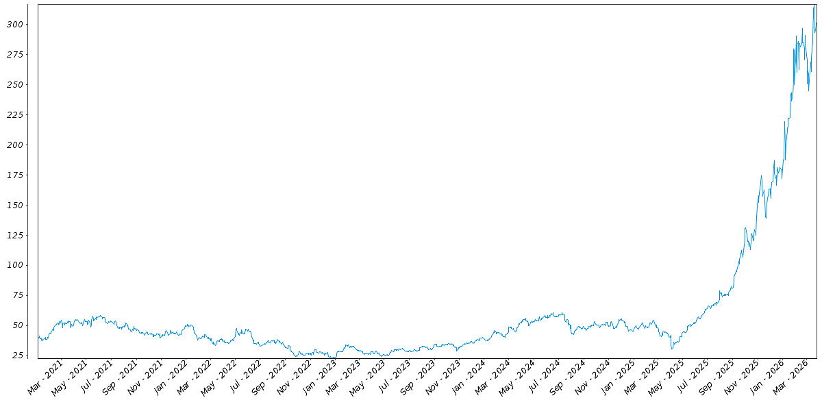 The following graph sets forth the daily historical performance of WDC in the period from January 2, 2021 through the Strike Date. We obtained this historical data from Bloomberg L.P. We have not independently verified the accuracy or completeness of the information obtained from Bloomberg L.P. The Closing Market Prices reflected in the graph below may have been adjusted to reflect certain corporate actions, such as stock splits and reverse stock splits. On the Strike Date, the Closing Market Price of WDC was $296.14.