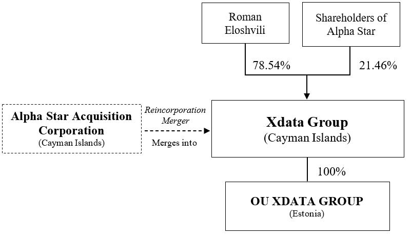 The board of directors of Alpha Star Acquisition Corporation, a Cayman Islands exempted company, has unanimously approved the Transactions (as defined below) contemplated by that certain business combination agreement dated as of September 12, 2024 (the “Business Combination Agreement”) by and among Alpha Star Acquisition Corporation (“Alpha Star”), a Cayman Islands exempted company, OU XDATA GROUP (“XDATA”), a company incorporated in Estonia, and Roman Eloshvili, the sole shareholder of XDATA. Xdata Group (“PubCo”) was incorporated on September 4, 2024. On September 23, 2024, PubCo entered into a joinder agreement with Alpha Star, XDATA, and Roman Eloshvili, pursuant to which PubCo agreed to be bound by the terms of the Business Combination Agreement. Pursuant to the Business Combination Agreement, Alpha Star will merge (the “Reincorporation Merger”) with and into PubCo, with PubCo surviving the Reincorporation Merger as the holding and listed company, and immediately thereafter and as part of the same overall transaction, PubCo (as the surviving company of the Reincorporation Merger) will acquire the shares, representing 100% (on an as-converted and fully diluted basis) of the shares issued and outstanding of XDATA, resulting in XDATA being a wholly owned subsidiary of PubCo, in exchange for certain number of shares of PubCo (the “Share Exchange,” together with the Reincorporation Merger, the “Business Combination”). As a result of the Business Combination, and upon consummation of the Business Combination and the other transactions contemplated by the Business Combination Agreement (such transactions, collectively, the “Transactions”), the shareholders of Alpha Star and XDATA will become shareholders of PubCo. The Business Combination Agreement was subsequently amended by certain supplemental agreement, by and among Alpha Star, XDATA, Roman Eloshvili and PubCo, dated as of December 15, 2024 (the “Supplemental Agreement”).