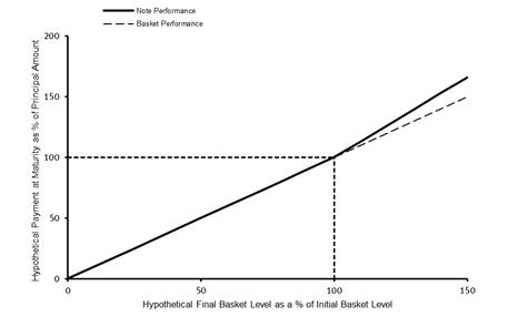 | · | if the final basket level is greater than the initial basket level, the sum of (i) $1,000 plus (ii) the product of (a) $1,000 times (b) the upside participation rate times (c) the basket return; or |