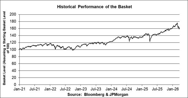 The following graph is based on the basket closing levels for the period from January 4, 2021 through March 25, 2026, assuming that the basket closing level was 100 on January 4, 2021. We derived the basket closing levels based on the method of calculating the basket closing level as described in this pricing supplement and on the closing levels of the relevant basket underliers on the relevant dates. We obtained the closing levels reflected in the graph below from the Bloomberg Professional® service (“Bloomberg”), without independent verification. The basket closing level has been normalized such that