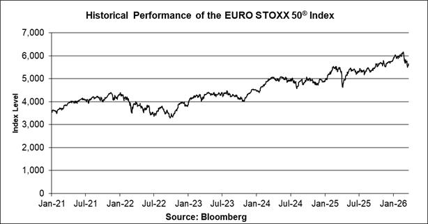 The EURO STOXX 50® Index consists of 50 component stocks of market sector leaders from within the Eurozone. The EURO STOXX 50® Index and STOXX® are the intellectual property (including registered trademarks) of STOXX Limited, Zurich, Switzerland and/or its licensors (the “Licensors”), which are used under license. The notes based on the EURO STOXX 50® Index are in no way sponsored, endorsed, sold or promoted by STOXX Limited and its Licensors and neither STOXX Limited nor any of its Licensors shall have any liability with respect thereto. For additional information about the EURO STOXX 50® Index, see the information set forth under “Equity Index Descriptions — The STOXX Benchmark Indices” on page US-75 of the accompanying underlying supplement.
