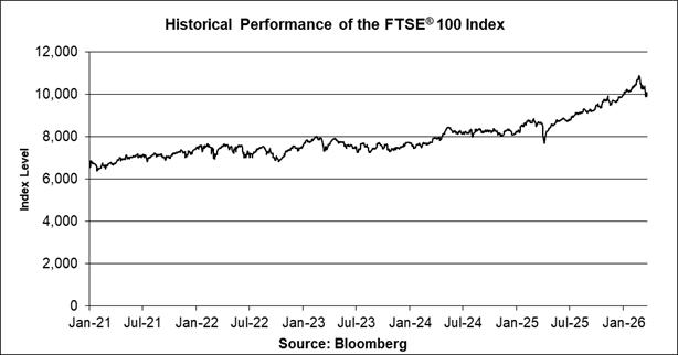 The FTSE® 100 Index is an index calculated, published and disseminated by FTSE Russell. The FTSE® 100 Index measures the composite price performance of stocks of the largest 100 companies (determined on the basis of market capitalization) traded on the London Stock Exchange. For additional information about the FTSE® 100 Index, see the information set forth under “Equity Index Descriptions — The FTSE® 100 Index” on page US-8 of the accompanying underlying supplement.