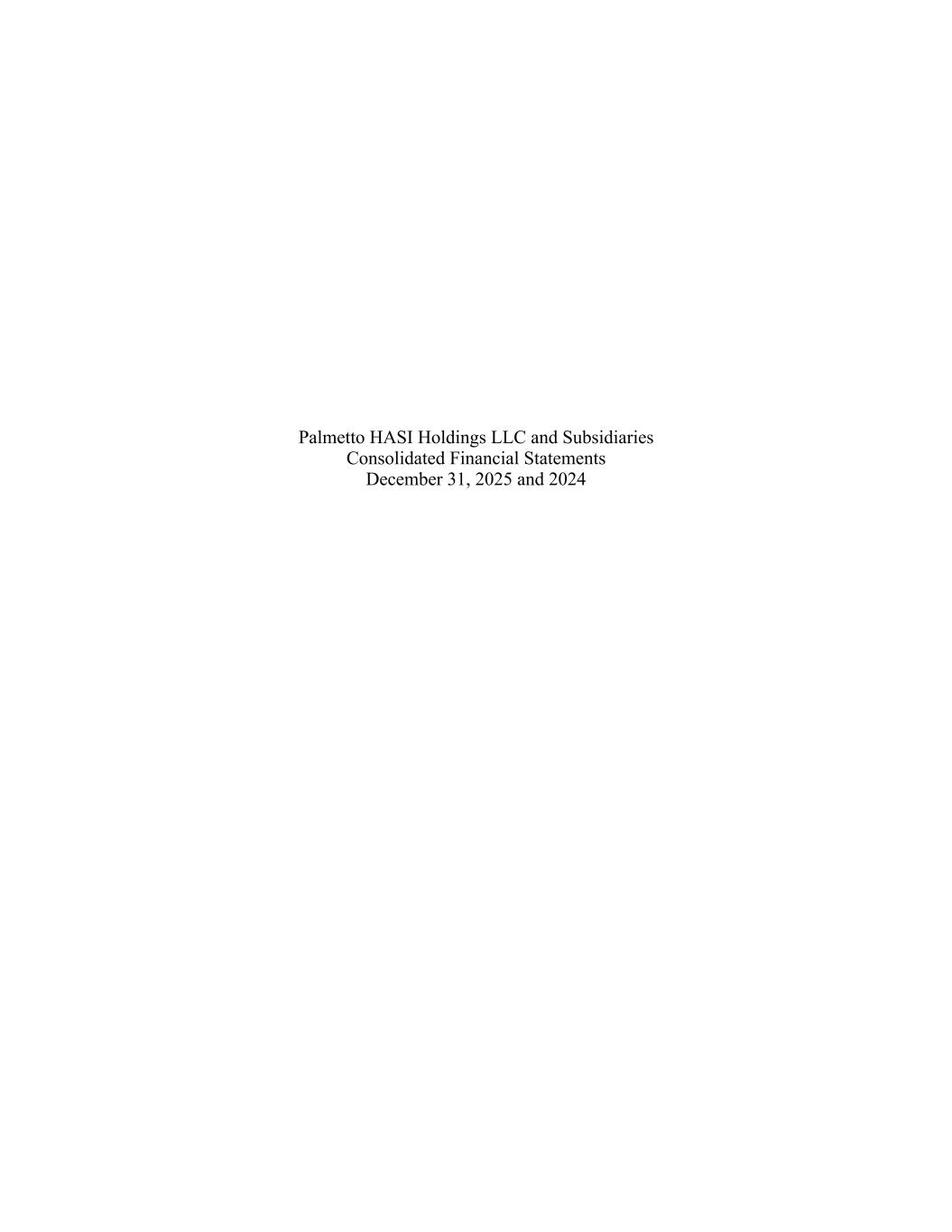 Palmetto HASI Holdings LLC and Subsidiaries Consolidated Financial Statements December 31, 2025 and 2024