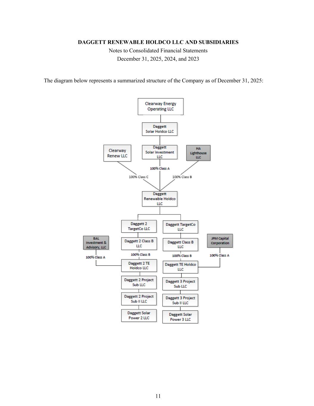 The diagram below represents a summarized structure of the Company as of December 31, 2025: DAGGETT RENEWABLE HOLDCO LLC AND SUBSIDIARIES Notes to Consolidated Financial Statements December 31, 2025, 2024, and 2023 11