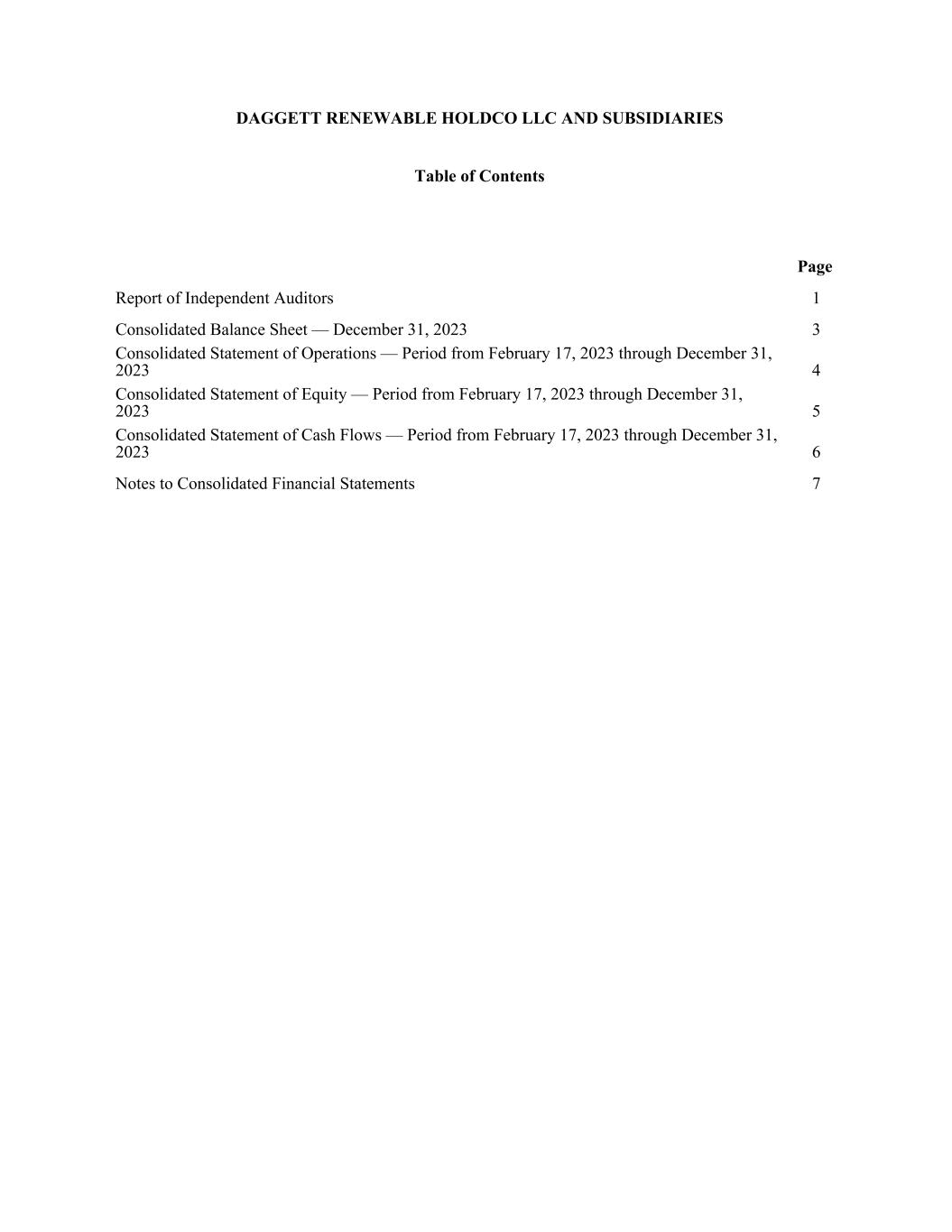 DAGGETT RENEWABLE HOLDCO LLC AND SUBSIDIARIES Table of Contents Page Report of Independent Auditors 1 Consolidated Balance Sheet — December 31, 2023 3 Consolidated Statement of Operations — Period from February 17, 2023 through December 31, 2023 4 Consolidated Statement of Equity — Period from February 17, 2023 through December 31, 2023 5 Consolidated Statement of Cash Flows — Period from February 17, 2023 through December 31, 2023 6 Notes to Consolidated Financial Statements 7