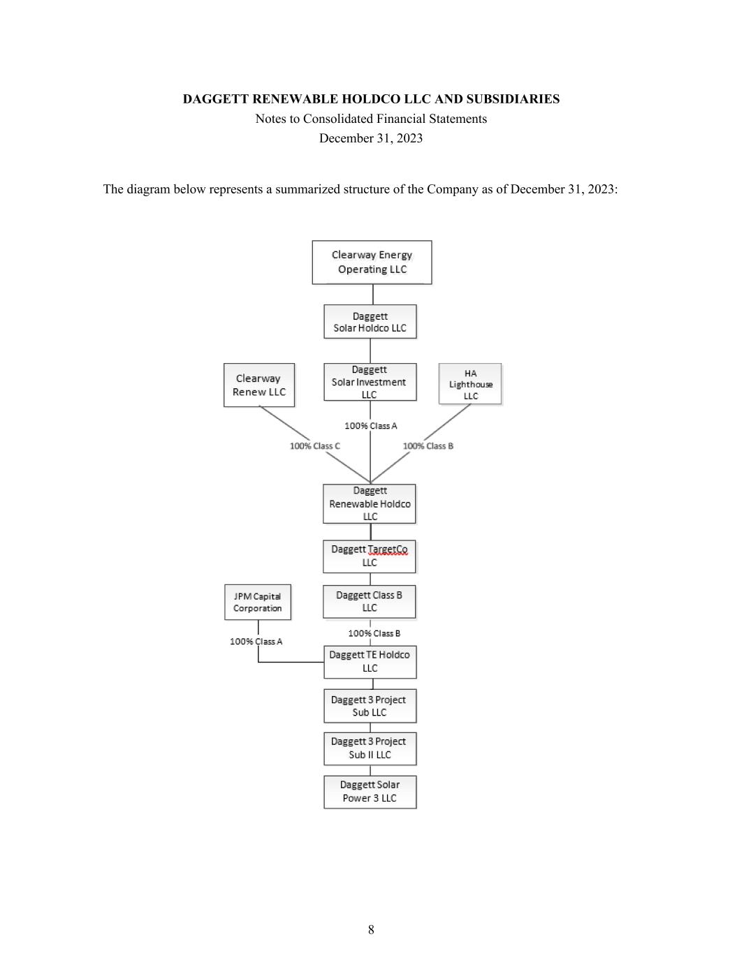 The diagram below represents a summarized structure of the Company as of December 31, 2023: DAGGETT RENEWABLE HOLDCO LLC AND SUBSIDIARIES Notes to Consolidated Financial Statements December 31, 2023 8