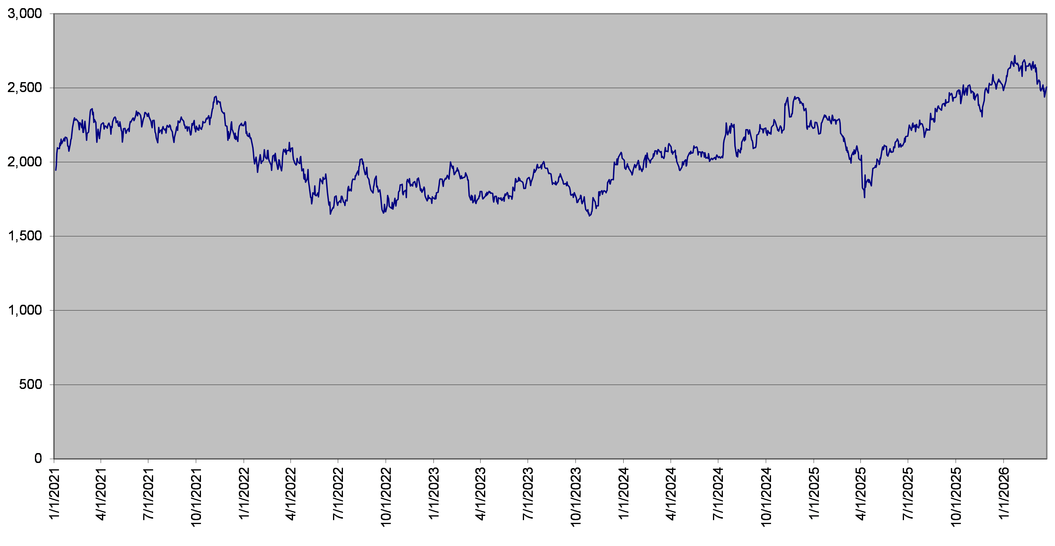 SPX Index Daily Closing Levels January 1, 2021 to March 24, 2026 |