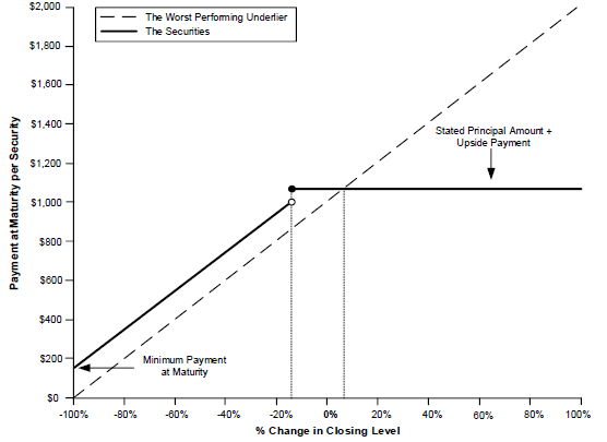 oIf the worst performing underlier depreciates 85%, investors will lose 70% of their principal and receive only $300 per security at maturity, or 30% of the stated principal amount.