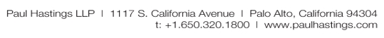 | 3. | The Warrant Shares have been duly authorized by all necessary corporate action on the part of the Company and assuming sufficient authorized but unissued shares of Common Stock are available for issuance when the Warrants are exercised, the Warrant Shares, when issued, delivered and paid for in accordance with the terms of the Warrants, will be validly issued, fully paid and nonassessable. |