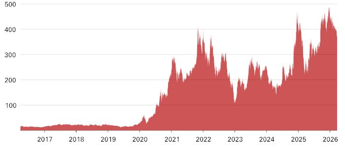 The following graph sets forth the historical performance of TSLA based on the daily historical closing values from March 28, 2016 through March 25, 2026. We obtained the closing values below from the Bloomberg Professional® service. We have not undertaken any independent review of, or made any due diligence inquiry with respect to, the information obtained from the Bloomberg Professional® service.![]() |