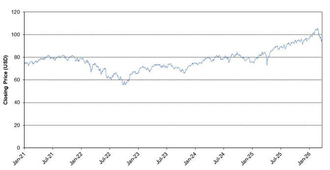 The graph below sets forth the historical performance of the EFA Fund based on the daily Closing Values from January 4, 2021 through March 24, 2026. We obtained the Closing Values shown in the graph below from Bloomberg Professional® service (“Bloomberg”). We have not independently verified the accuracy or completeness of the information obtained from Bloomberg. The Closing Values below may reflect adjustments in response to certain actions, such as stock splits and reverse stock splits.
