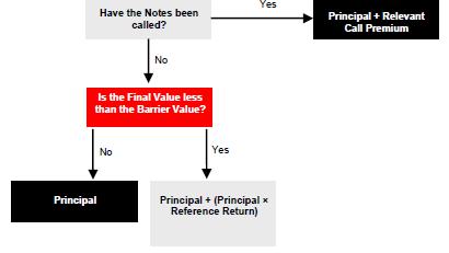 | Your payment on the Notes will depend on whether the Notes have been called, including on the Final Valuation Date, and whether the Final Value is greater than or equal to the Barrier Value. If your Notes are not called, you will lose some or all of your Principal Amount at maturity if the Final Value is less than the Barrier Value. |