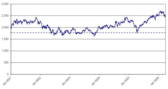 1,775.4646, which is equal to 70.00% of the initial index value of the Russell 2000® Index