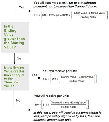 of $11.20 per unit and a range of hypothetical Ending Values. The actual amount you receive and the resulting total rate of return will depend on the actual Starting Value, Threshold Value, and Ending Value and