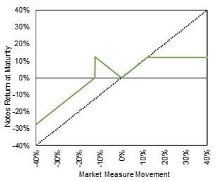 This graph reflects the returns on the notes, based on the Participation Rate of 100.00%, a hypothetical Threshold Value of 87.50% of the Starting Value (the