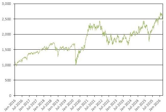 in the stocks included in the Index, excluding dividends.