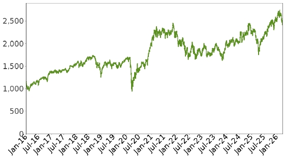 The following graph shows the daily historical performance of the Index in the period from January 1, 2016 through March 23, 2026. We obtained this historical data from Bloomberg Finance L.P. We have not independently verified the accuracy or completeness of the information obtained from Bloomberg Finance L.P. On March 23, 2026, the closing level of the Index was 2,494.227.