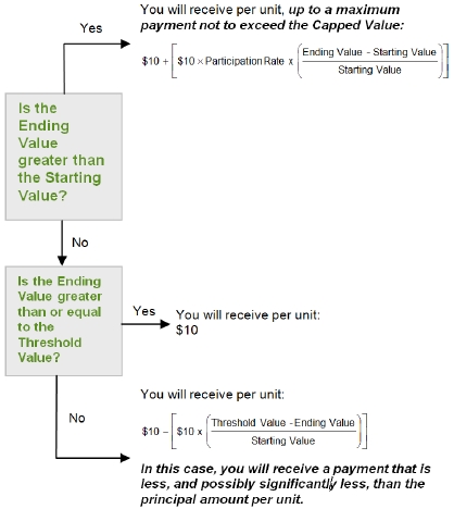 The notes provide you a leveraged return, subject to a cap, if the Ending Value of the Market Measure, which is the Russell 2000® Index (the “Index”), is greater than the Starting Value. If the Ending Value is equal to or less than the Starting Value but greater than or equal to the Threshold Value, you will receive the principal amount of your notes. If the Ending Value is less than the Threshold Value, you will lose a portion, which could be significant, of the principal amount of your notes. Any payments on the notes will be calculated based on the $10 principal amount per unit and will depend on the performance of the Index, subject to our credit risk. See “Terms of the Notes” below.