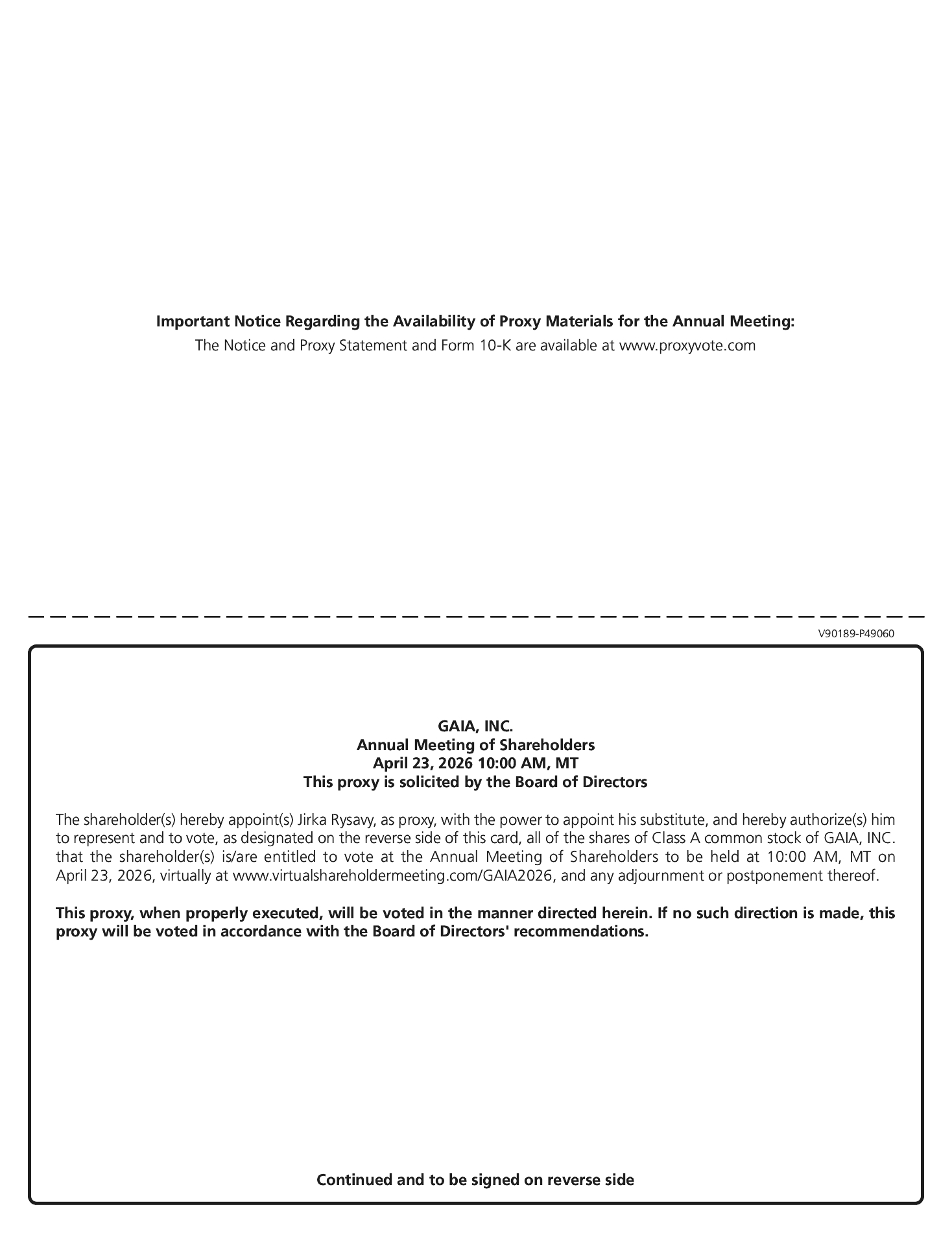 As part of our Code of Ethics, directors, officers, and employees are expected to make business decisions and take actions based upon the best interests of Gaia and not based upon personal relationships or benefits.
