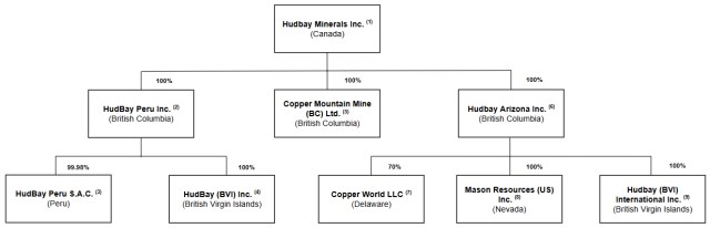 6. Hudbay Arizona Inc., through its subsidiaries, indirectly owns 70% of Copper World LLC and 100% of Mason Resources (US) Inc. ("Mason US").