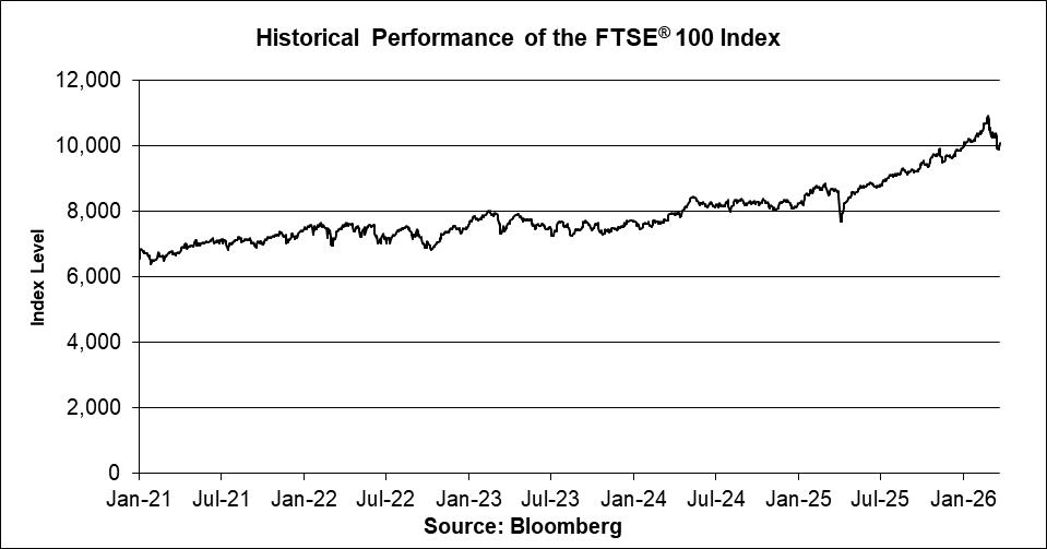 The FTSE® 100 Index is an index calculated, published and disseminated by FTSE Russell. The FTSE® 100 Index measures the composite price performance of stocks of the largest 100 companies (determined on the basis of market capitalization) traded on the London Stock Exchange. For additional information about the FTSE® 100 Index, see the information set forth under “Equity Index Descriptions — The FTSE® 100 Index” on page US-8 of the accompanying underlying supplement.