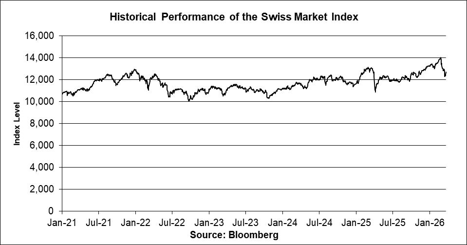 | Swiss Market Index | SMI | 11.00% | 12,718.36 |