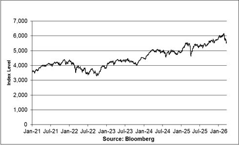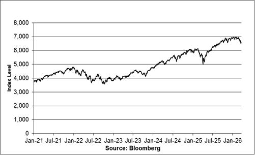 Historical Performance of the S&P 500® Index January 4, 2021 through March 24, 2026 |