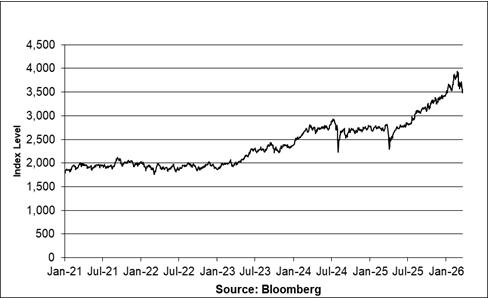 | First Quarter (through March 24, 2026) | 3,938.68 | 3,477.52 | 3,559.67 |