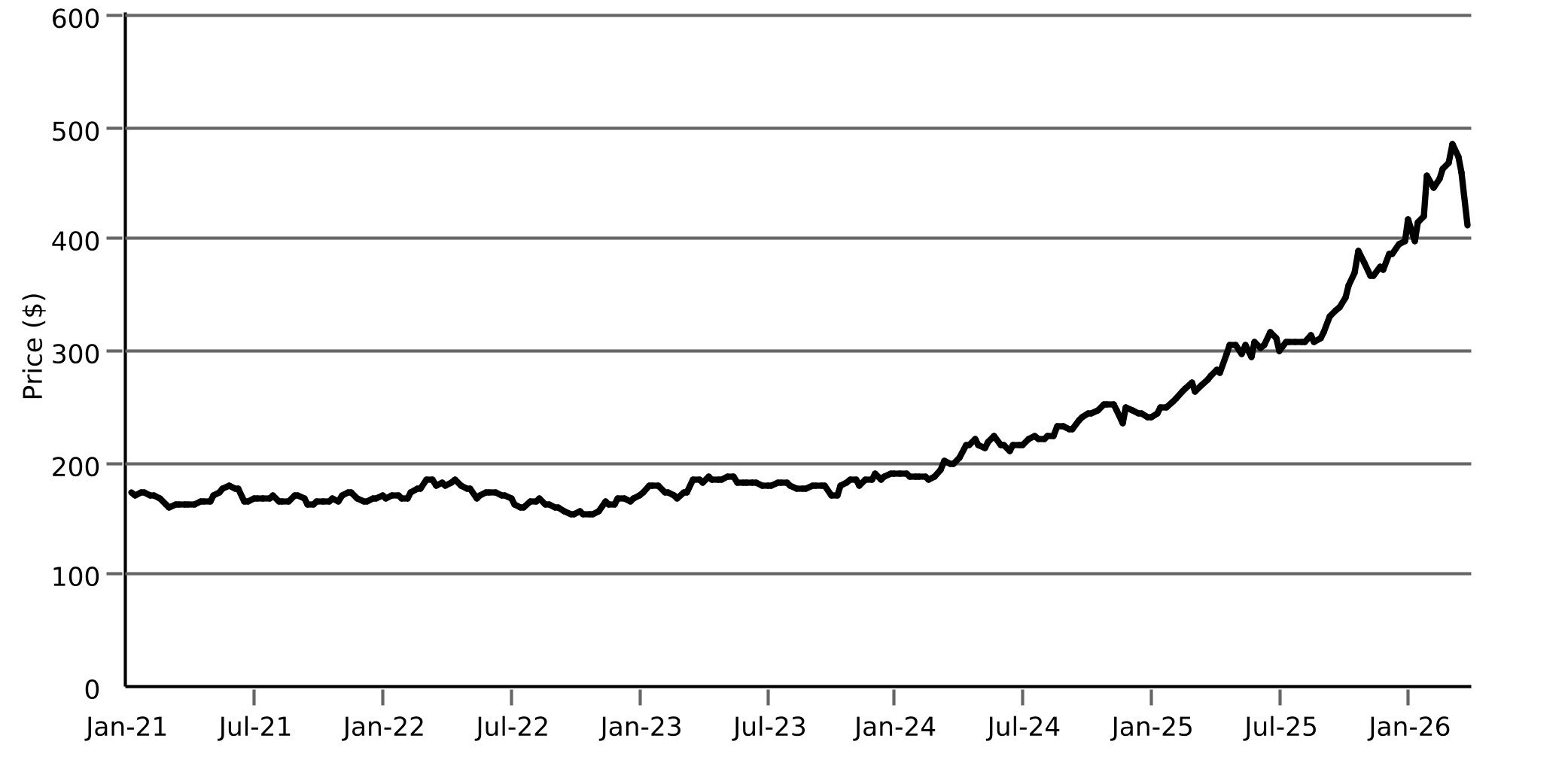 The following graphs set forth the historical performance of each Underlying based on the weekly historical closing values from January 8, 2021 through March 20, 2026. The closing value of the Nasdaq-100® Technology Sector IndexSM on March 25, 2026 was 12,073.26. The closing value of the Russell 2000® Index on March 25, 2026 was 2,536.378. The closing value of the SPDR® Gold Trust on March 25, 2026 was $416.29. We obtained the closing values above and below from the Bloomberg Professional® service (“Bloomberg”), without independent verification. The closing values of the Fund above and below may have been adjusted by Bloomberg for actions taken by the Fund, such as stock splits.