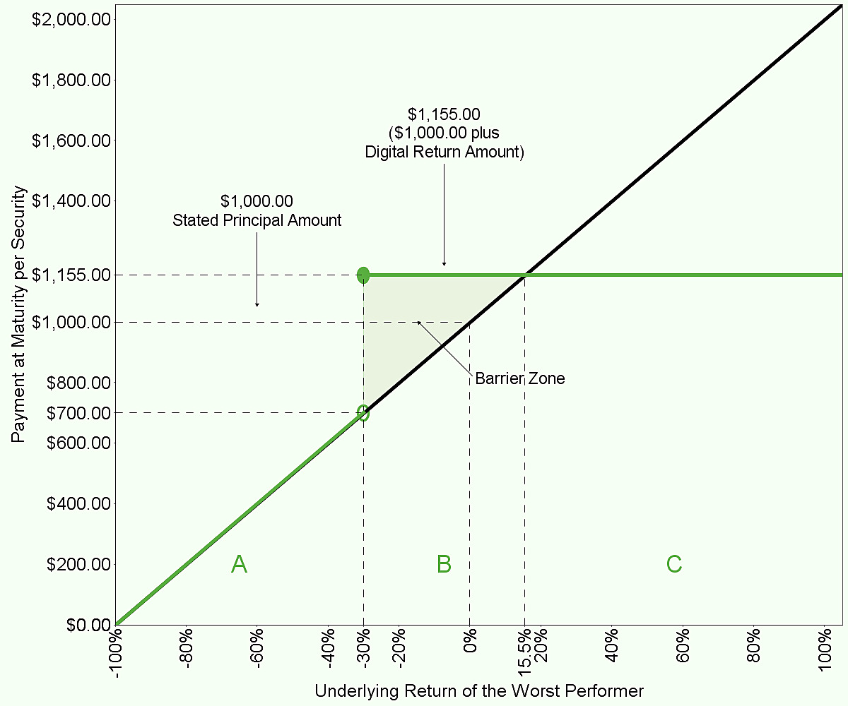 ** The diagram and the hypotheticals assume the lowest digital return amount at maturity.