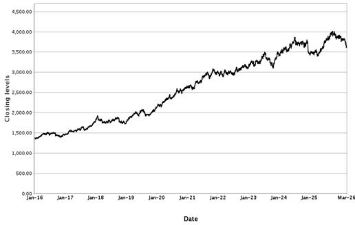 The following graph sets forth hypothetical back-tested and historical closing values of the Underlier for the period from January 1, 2016 to March 26, 2026. The Underlier was launched on February 23, 2024. Accordingly, all closing values for periods prior to the launch date are based on hypothetical back-tested information, utilizing the same methodology as is currently in place for the Underlier. The hypothetical back-tested performance of the Underlier is based on criteria that have been applied retroactively with the benefit of hindsight; these criteria cannot account for all financial risk that may affect the actual performance of the Underlier in the future. The future performance of the Underlier may vary significantly from the hypothetical back-tested and historical performance illustrated in the graph below.