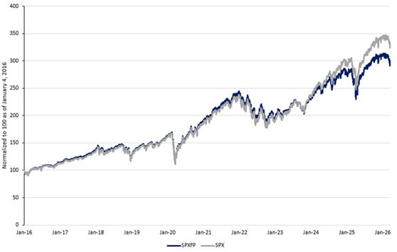 In the graph below, references to “SPXFP” are to the S&P 500 Futures Excess Return Index and references to “SPX” are to the S&P 500® Index.