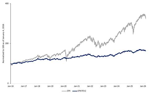 In the graphs below, references to “SPXI7EV2” are to the S&P 500 Futures 7% Intraday Edge Volatility TCA 2% Decrement Index (USD) ER and references to “SPX” are to the S&P 500® Index.