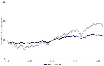 The following graphs set forth a comparison of the hypothetical back-tested and historical performance of the S&P 500 Futures 7% Intraday Edge Volatility TCA 2% Decrement Index (USD) ER against the historical performance of the S&P 500® Index. The first graph shows comparative performance data for the period from January 4, 2016 through March 24, 2026, each normalized to have a closing value of 100.00 on January 4, 2016 to facilitate a comparison. The second graph shows comparative performance data for the period from January 3, 2022 through March 24, 2026, each normalized to have a closing value of 100.00 on January 3, 2022 to facilitate a comparison. The performance of the S&P 500® Index shown below is its price return performance – i.e., its performance without reflecting dividends. The total return performance of the S&P 500® Index (i.e., its performance reflecting dividends) would be greater than the price return performance shown below.