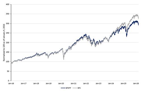 In the graph below, references to “SPXFP” are to the S&P 500 Futures Excess Return Index and references to “SPX” are to the S&P 500® Index.