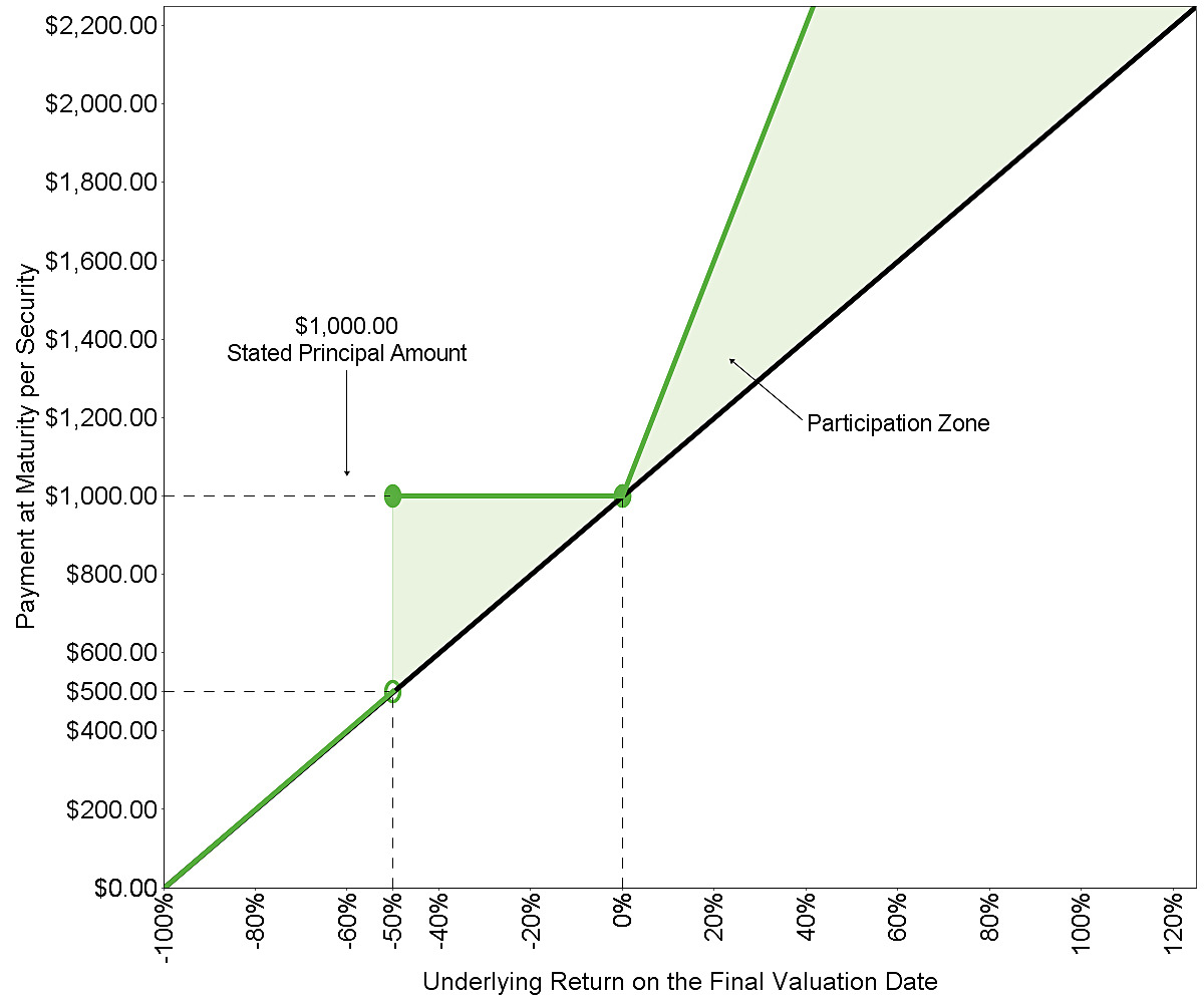 ▪The securities offer the potential for automatic early redemption at a premium following the first valuation date (other than the final valuation date) on which the closing value of the underlying is greater than or equal to the initial underlying value. If the securities are not automatically redeemed prior to maturity, the securities will no longer offer the opportunity to receive a premium, but instead, at maturity, will provide for (i) the opportunity to participate in any appreciation of the underlying from the initial underlying value at the upside participation rate specified below and (ii) contingent repayment of the stated principal amount at maturity if the underlying depreciates, but only so long as the final underlying value is greater than or equal to the final barrier value specified below. However, if the securities are not automatically redeemed prior to maturity and the final underlying value is less than the final barrier value, you will lose 1% of the stated principal amount of your securities for every 1% by which the final underlying value is less than the initial underlying value. Although you will have downside exposure to the underlying, you will not receive dividends with respect to the underlying.