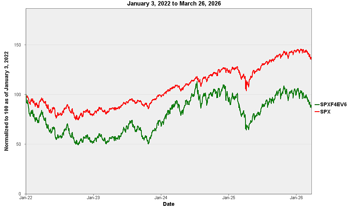 In the graphs below, references to “SPXF4EV6” are to the S&P 500 Futures 40% Edge Volatility 6% Decrement Index (USD) ER and references to “SPX” are to the S&P 500® Index.