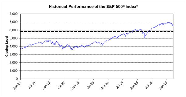 The graph below sets forth the historical performance of the Underlier from January 4, 2021 to March 26, 2026, based on the daily Closing Levels of the Underlier. The Closing Level of the Underlier on March 26, 2026 was 6,477.16.