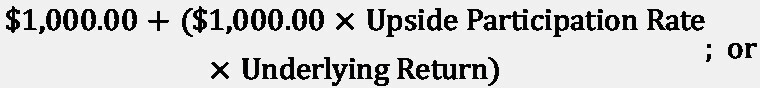 The Redemption Amount per $1,000.00 in principal amount of Notes will be: a) If the Ending Value of the Underlying is greater than the Starting Value: